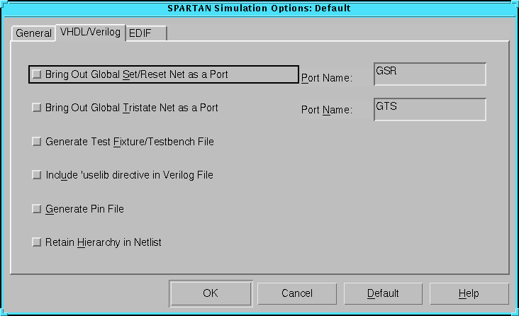 Figure 5.7 Spartan Simulation Template VHDL/Verilog Tab