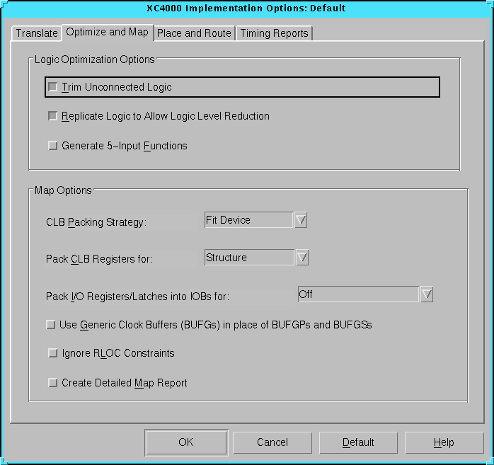 Figure 5.43 XC4000 Optimize and Map Tab