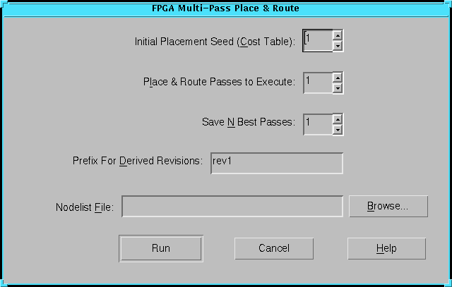 Figure 3.25 FPGA Multi-Pass Place & Route Dialog Box
