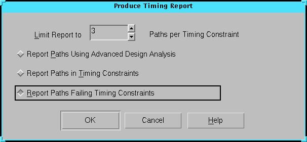 Figure 4.19 Produce Timing Reports Dialog Box (FPGA)