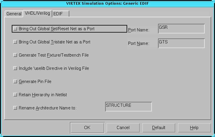 Figure 5.27 Virtex VHDL/Verilog Tab