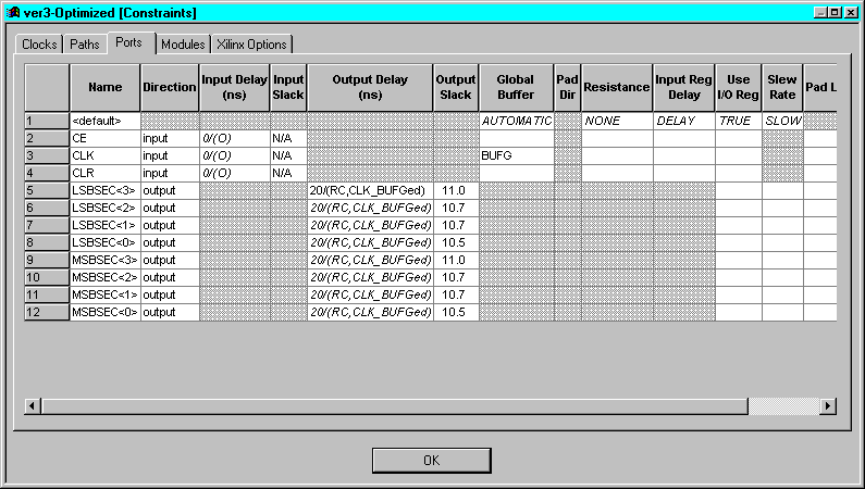 Figure 5.6 Implementation Constraints Editor - Ports Tab