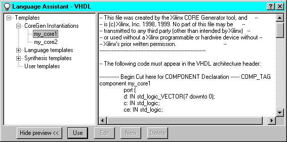 Figure 6.3 CORE Generator Templates in Language Assistant