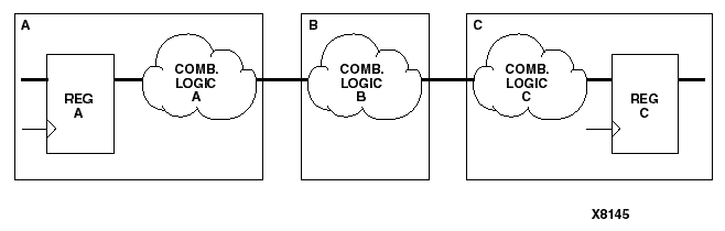 Figure 6.4 Combinatorial Logic Path Split Across Boundaries (Inefficient Use of Design Resources)