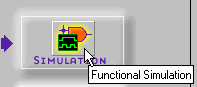 If your design has been created and synthesized as a top-level design, then click the Functional Simulation icon on the Simulation button in the Foundation Project Manager to automatically invoke the simulator and load the netlist. The Functional Simulation icon is shown in the following figure.