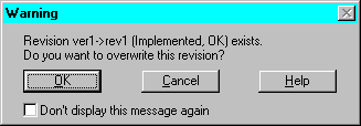 When you click the Implementation phase button, the current version/revision is overwritten by default. If you want your changes implemented in a new version, you must explicitly create the new version. This is done by selecting Project Create Version to access the Create Version dialog box shown in the following figure.