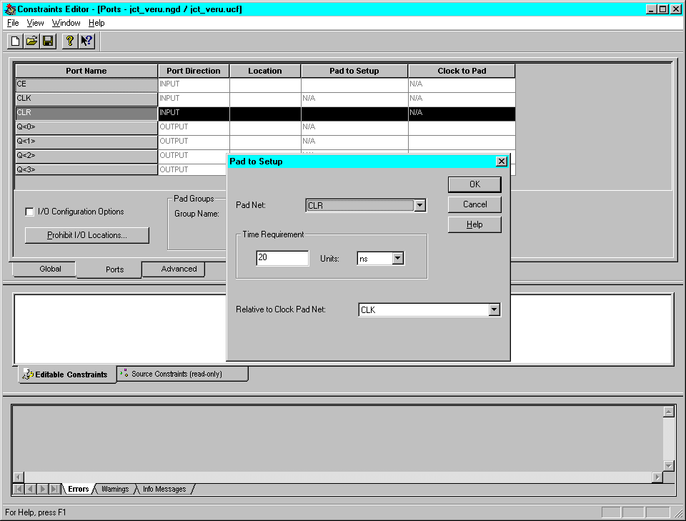 - The Constraints Editor is a Graphical User Interface (GUI) that you can run after the Translate program to create new constraints in a UCF file. To access the Constraints Editor, select Tools