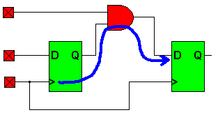 D/T input, including the receiving flip-flop’s tSU. When these flip-flops are clocked by the same clock, the delay on this